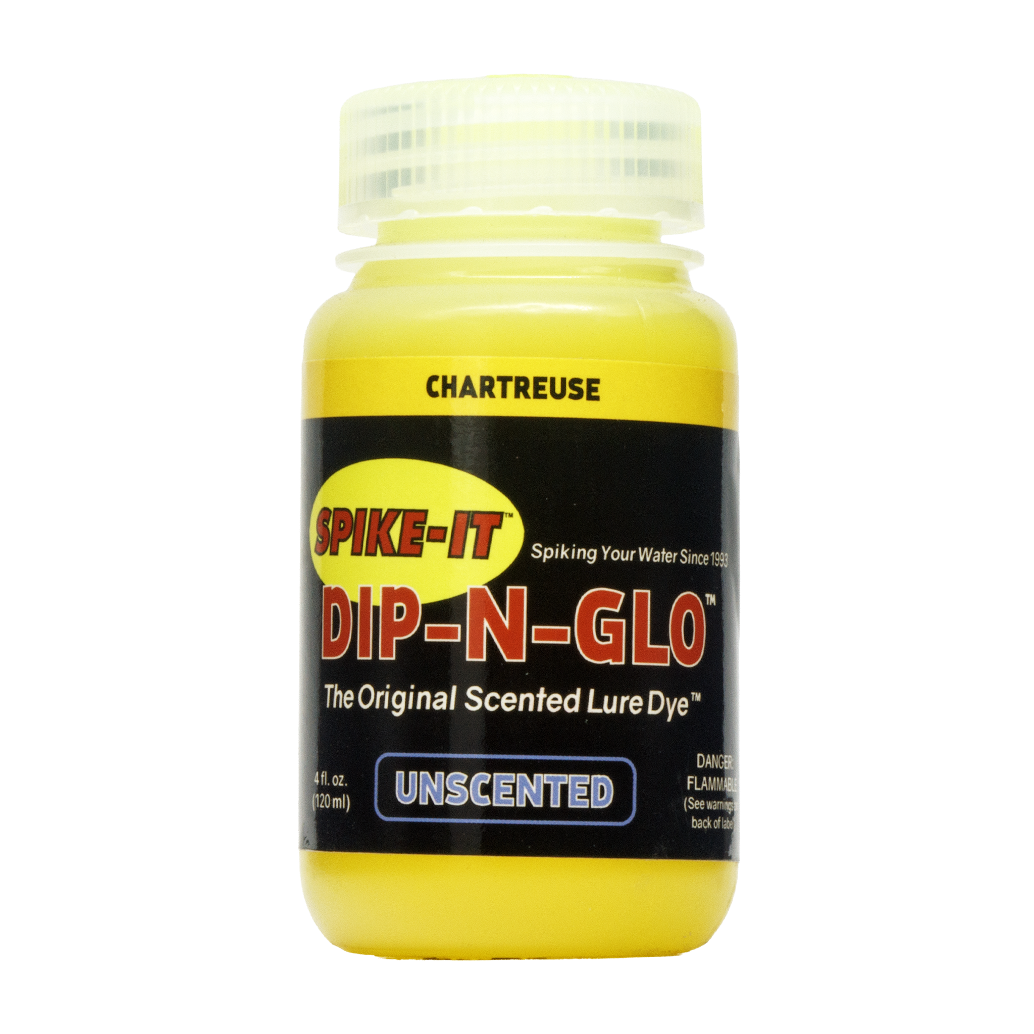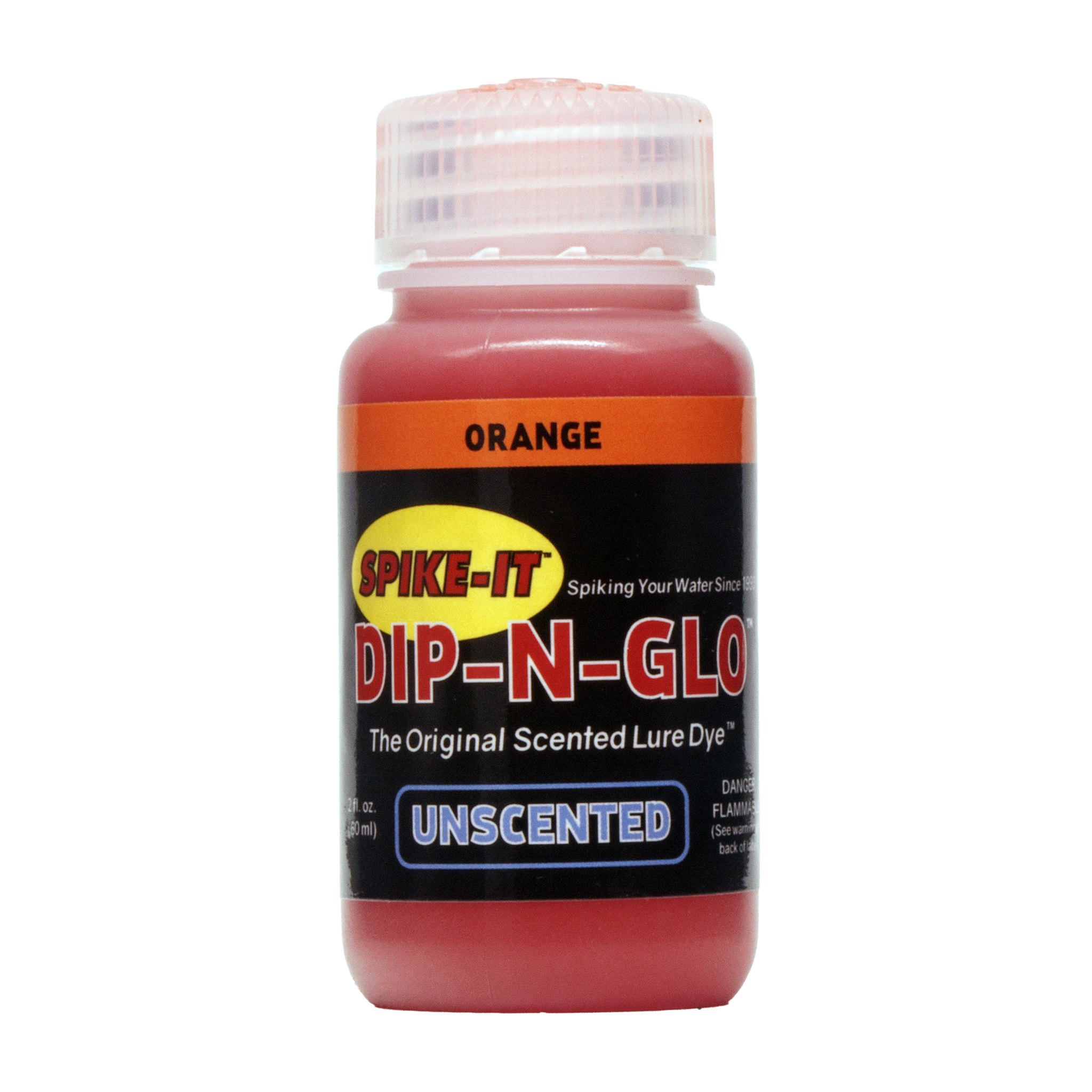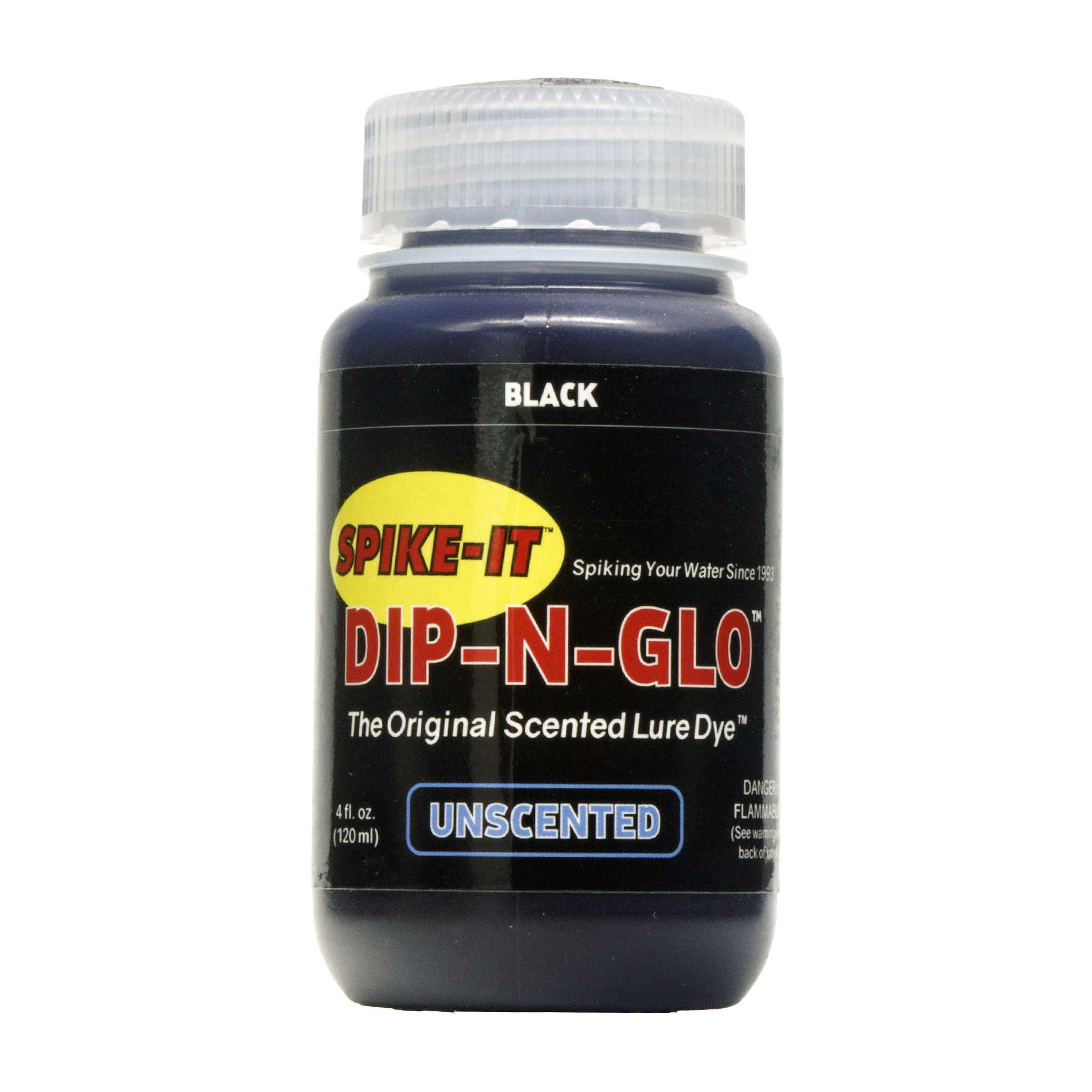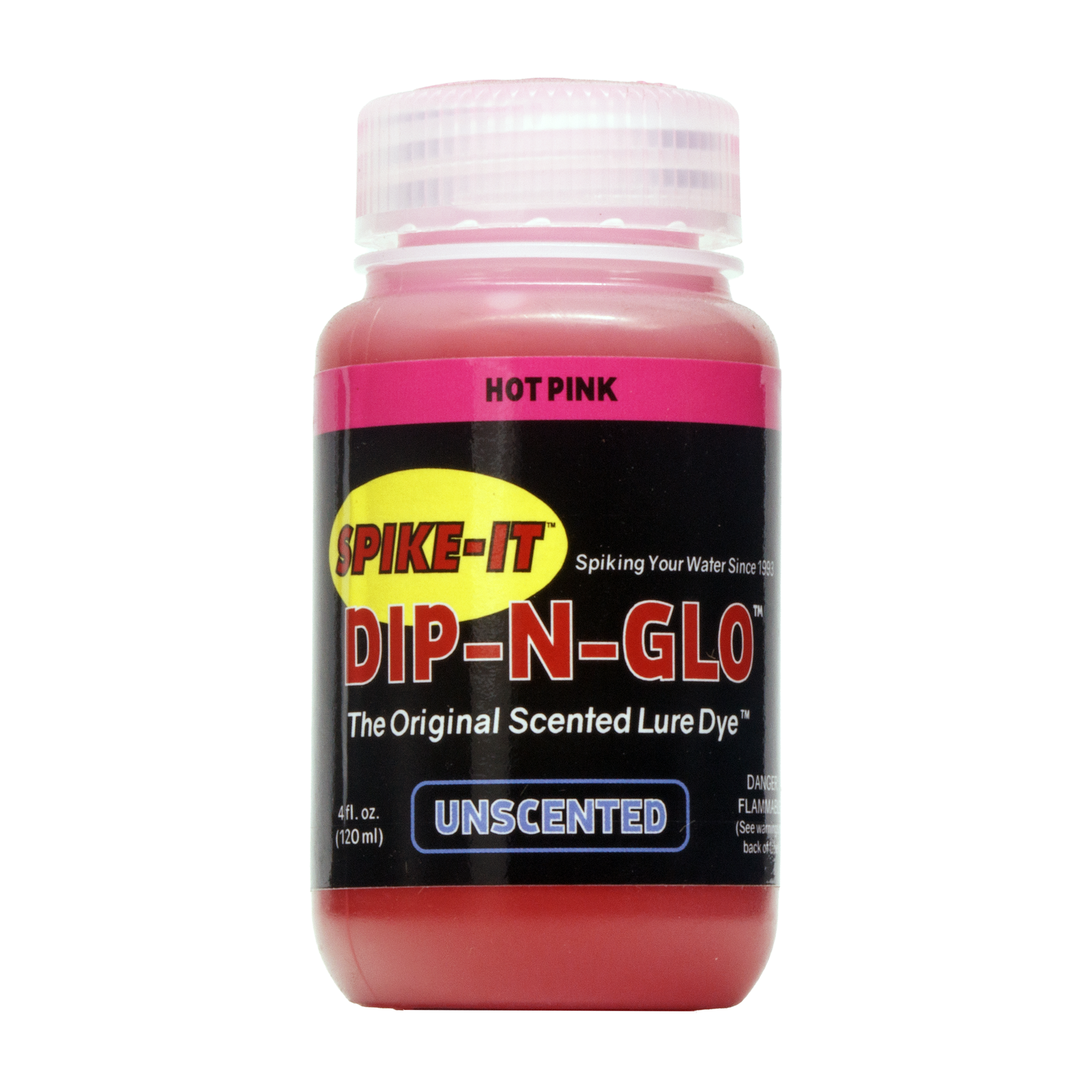 Dip-N-Glo is specially designed for dipping soft plastic lures to instantly dye and produce permanent color changes. Though our scented varieties are most popular, we also have Unscented for those who only want color change. Dip-N-Glo has given anglers the upper hand on their competitors for more than 25 years. Don’t go fishing without it!