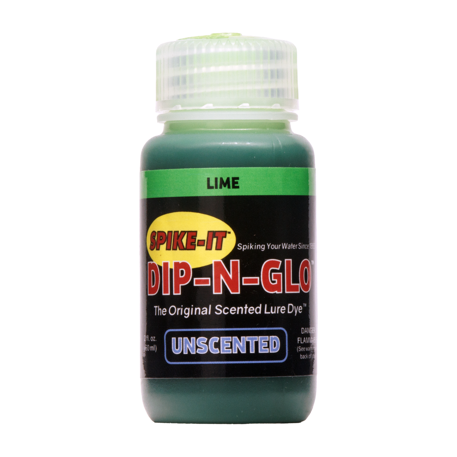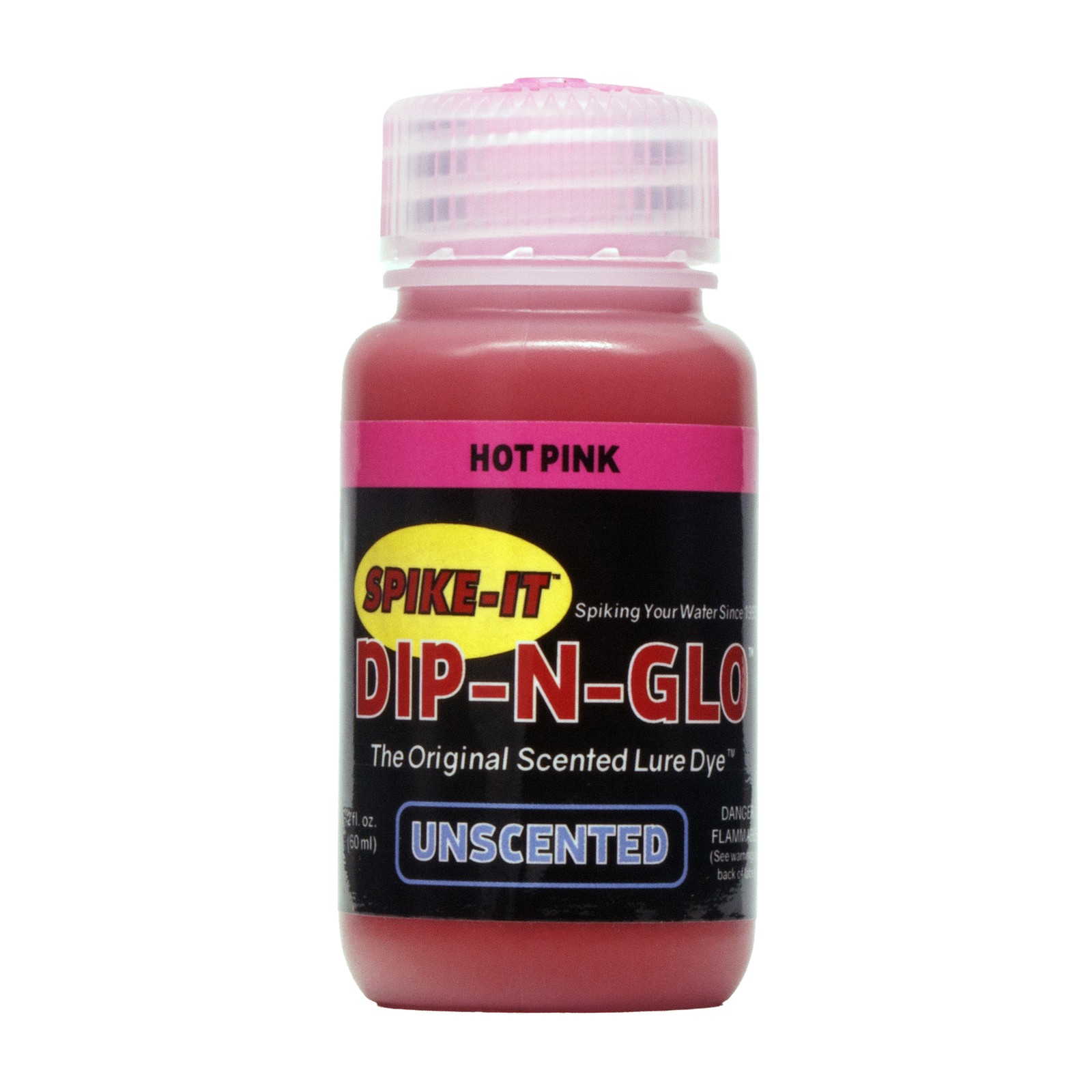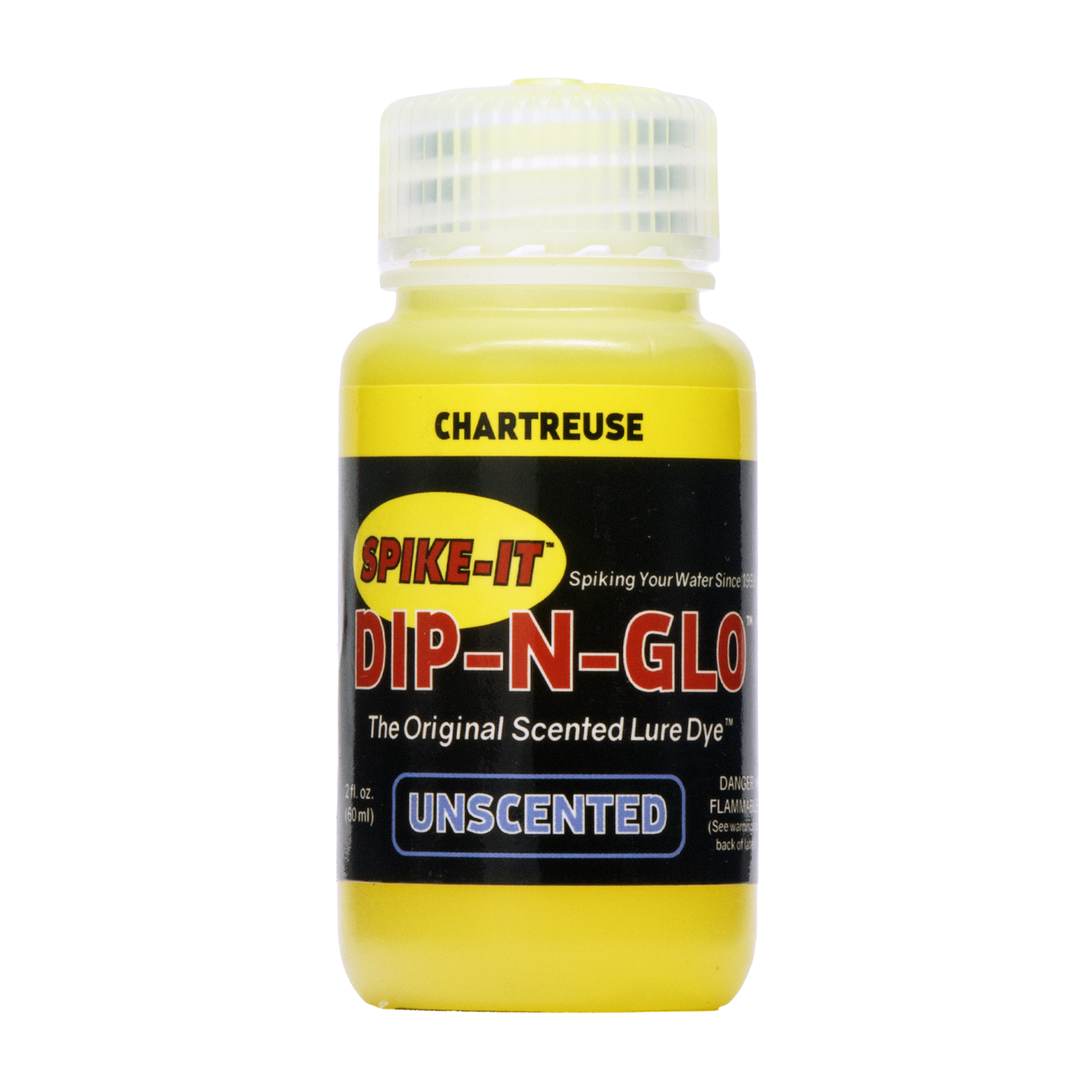 Dip-N-Glo is specially designed for dipping soft plastic lures to instantly dye and produce permanent color changes. Though our scented varieties are most popular, we also have Unscented for those who only want color change. Dip-N-Glo has given anglers the upper hand on their competitors for more than 25 years. Don’t go fishing without it!