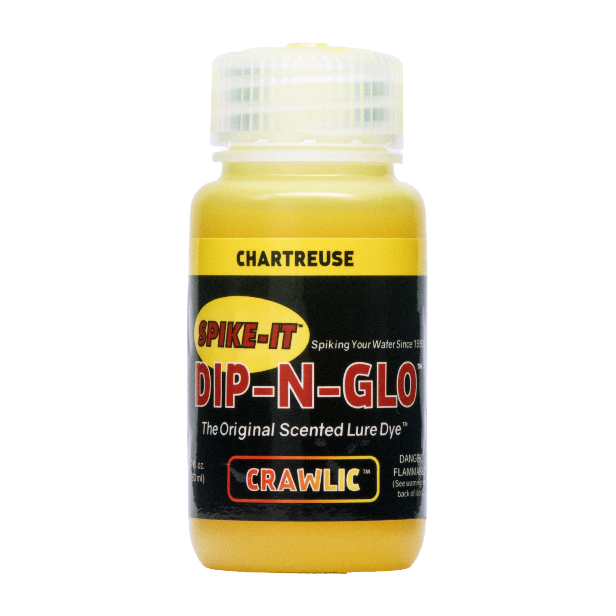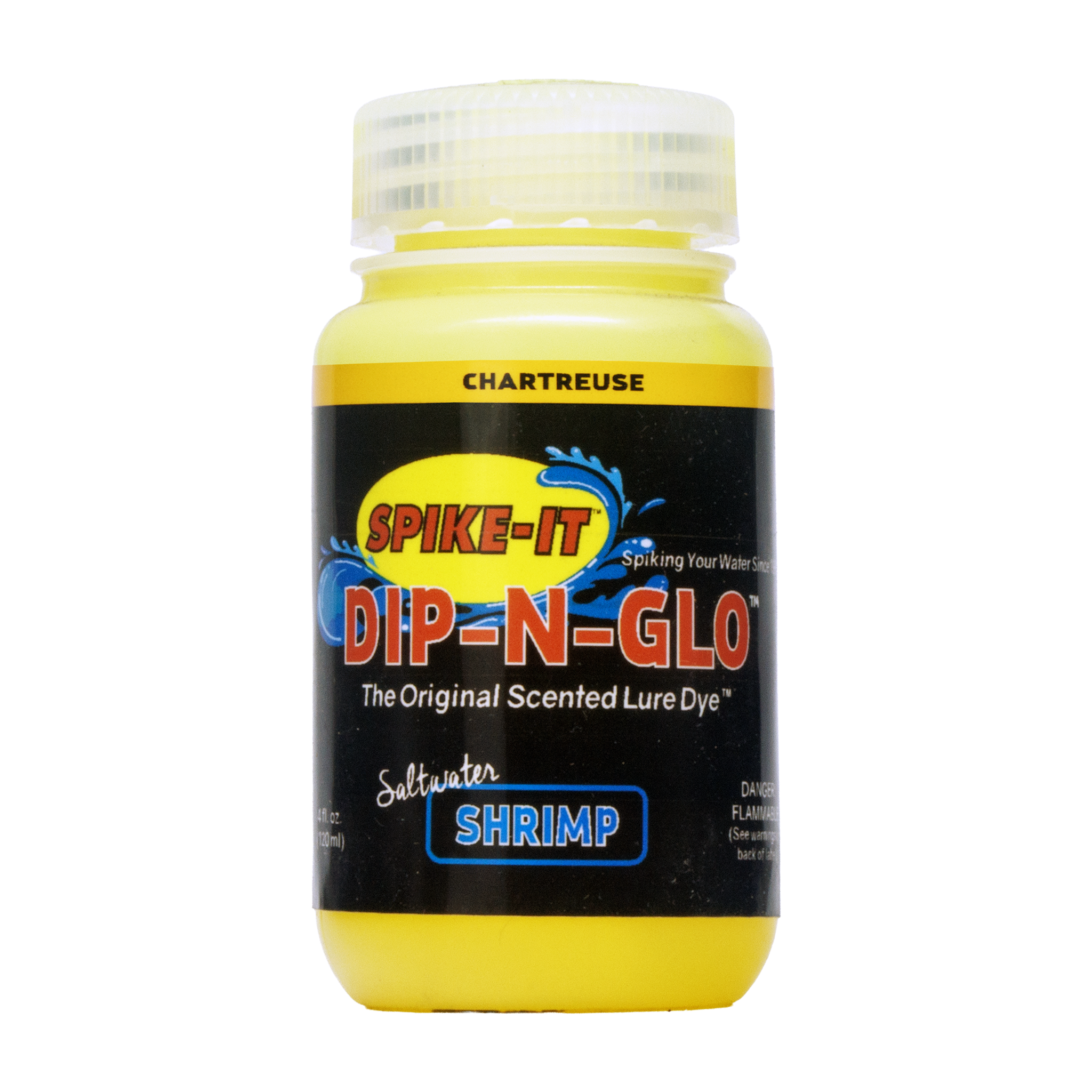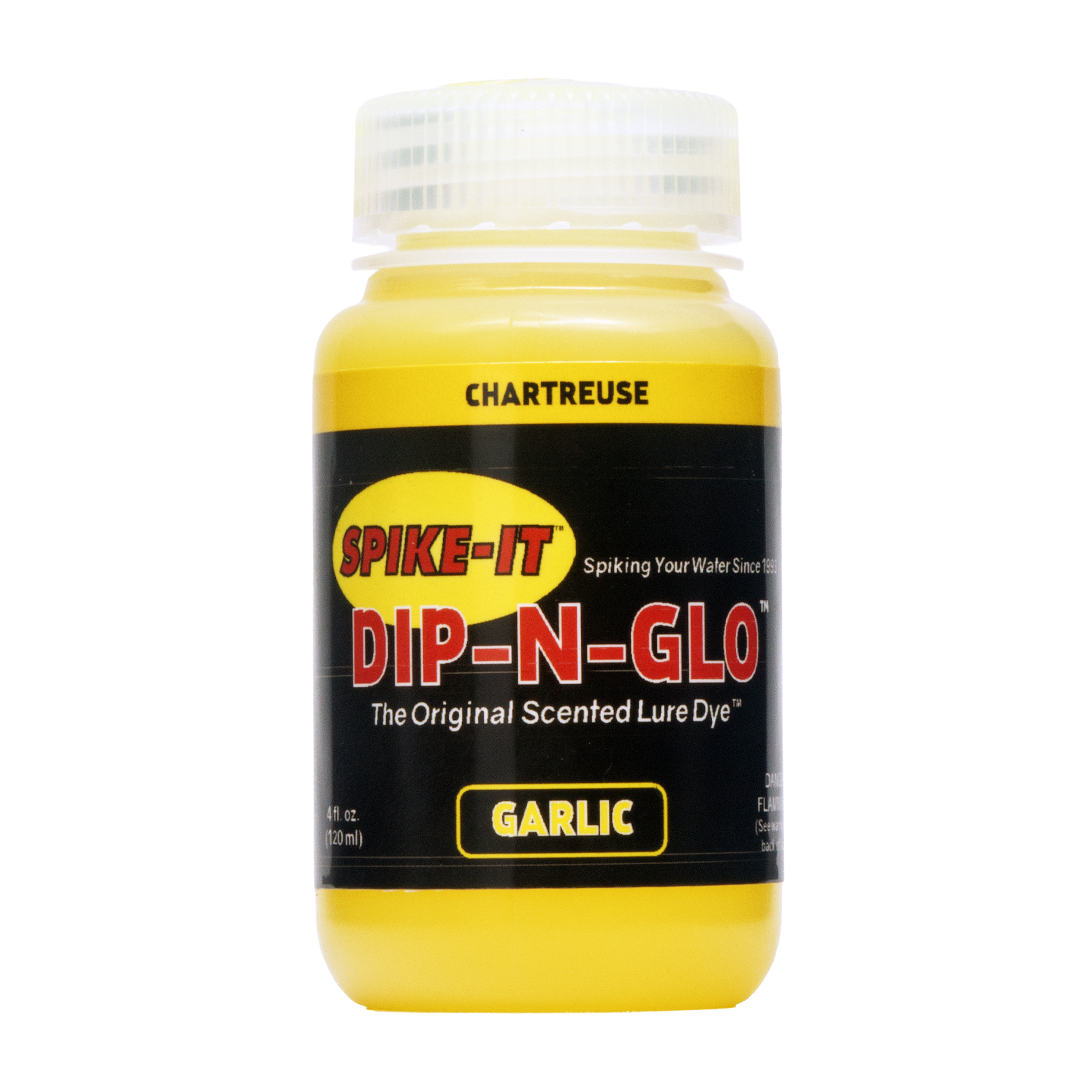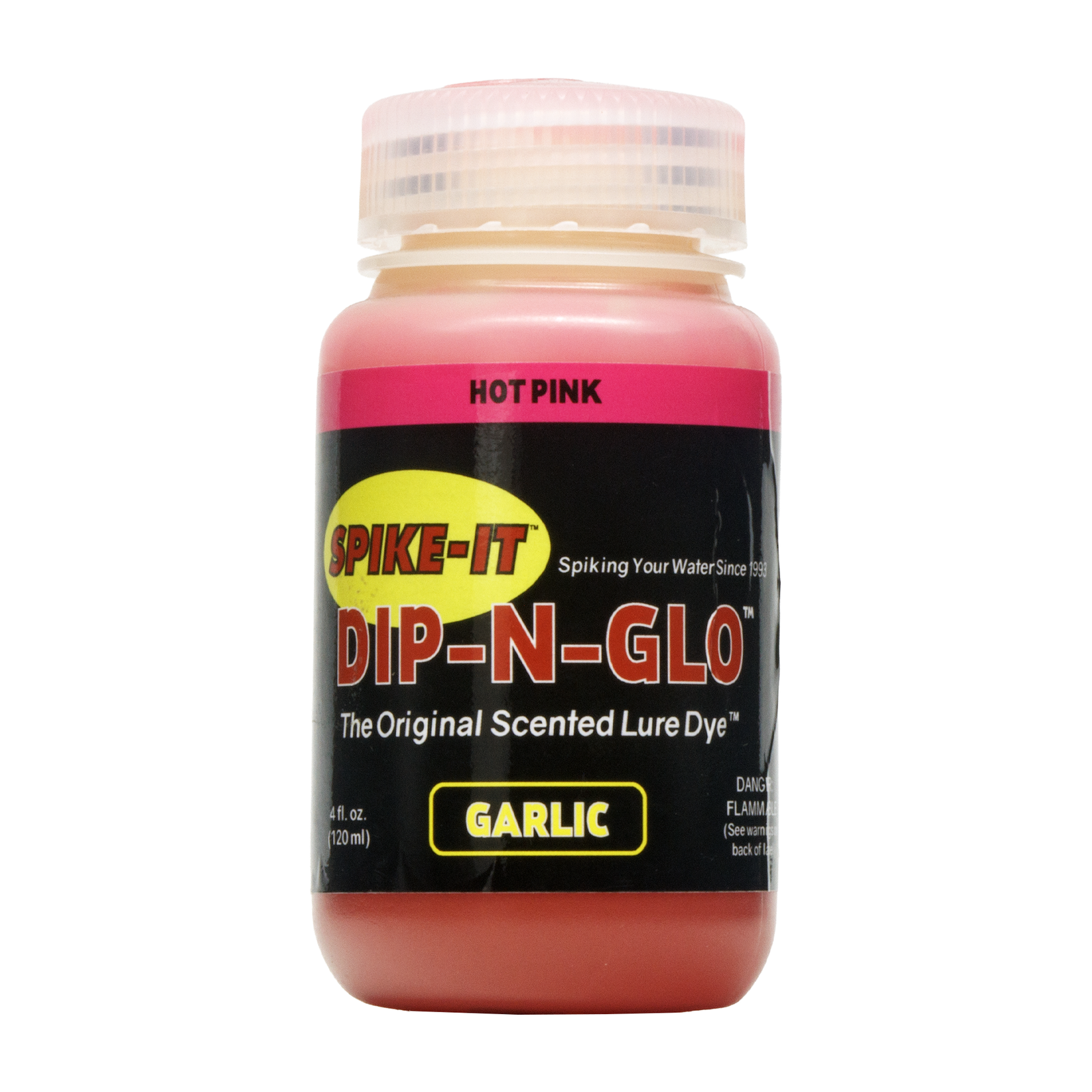 Dip-N-Glo is specially designed for dipping soft plastic lures to instantly dye and produce permanent color changes. Though our scented varieties are most popular, we also have Unscented for those who only want color change. Dip-N-Glo has given anglers the upper hand on their competitors for more than 25 years. Don’t go fishing without it!