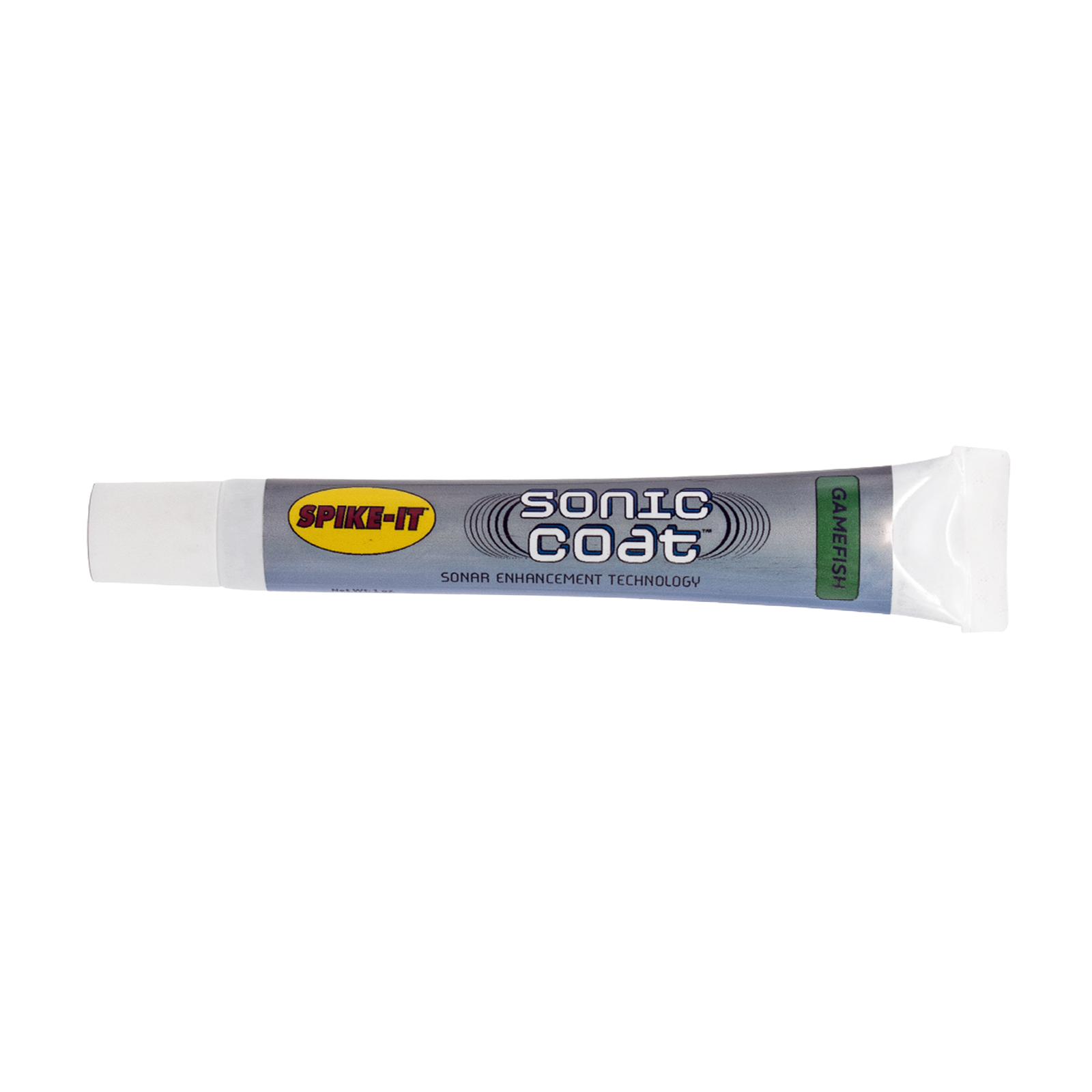 Sonic Coat™ gel formula is offered in a 1-ounce tube and will work on all types of lures. The gel is easily applied by hand and adds a slight silver luster but does not significantly change the color of the lure. It is available in our Gamefish and Garlic scents and offers long-lasting performance. Your lure is ready-to-use immediately after application.