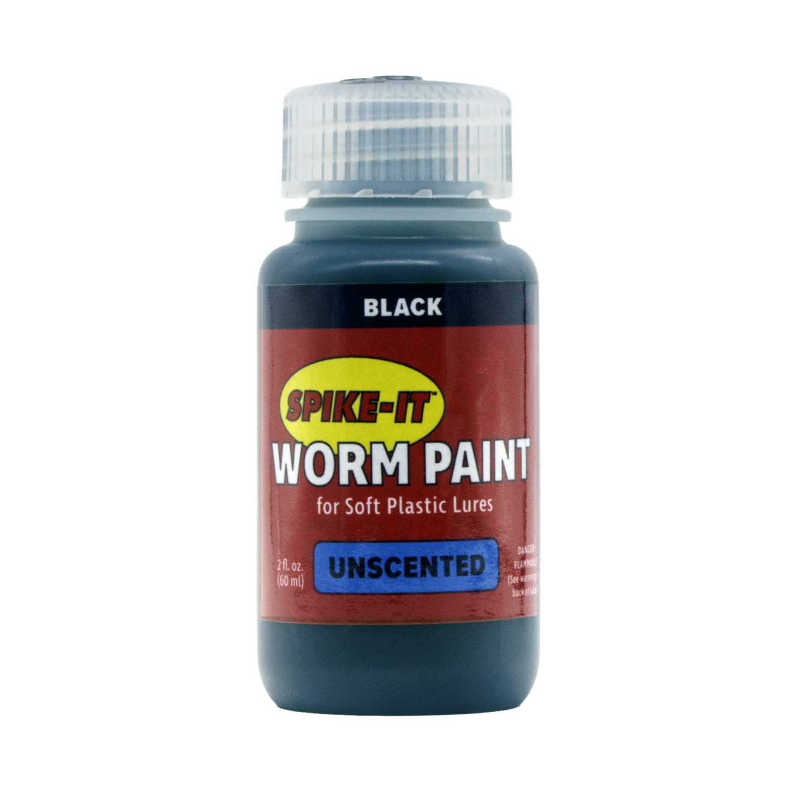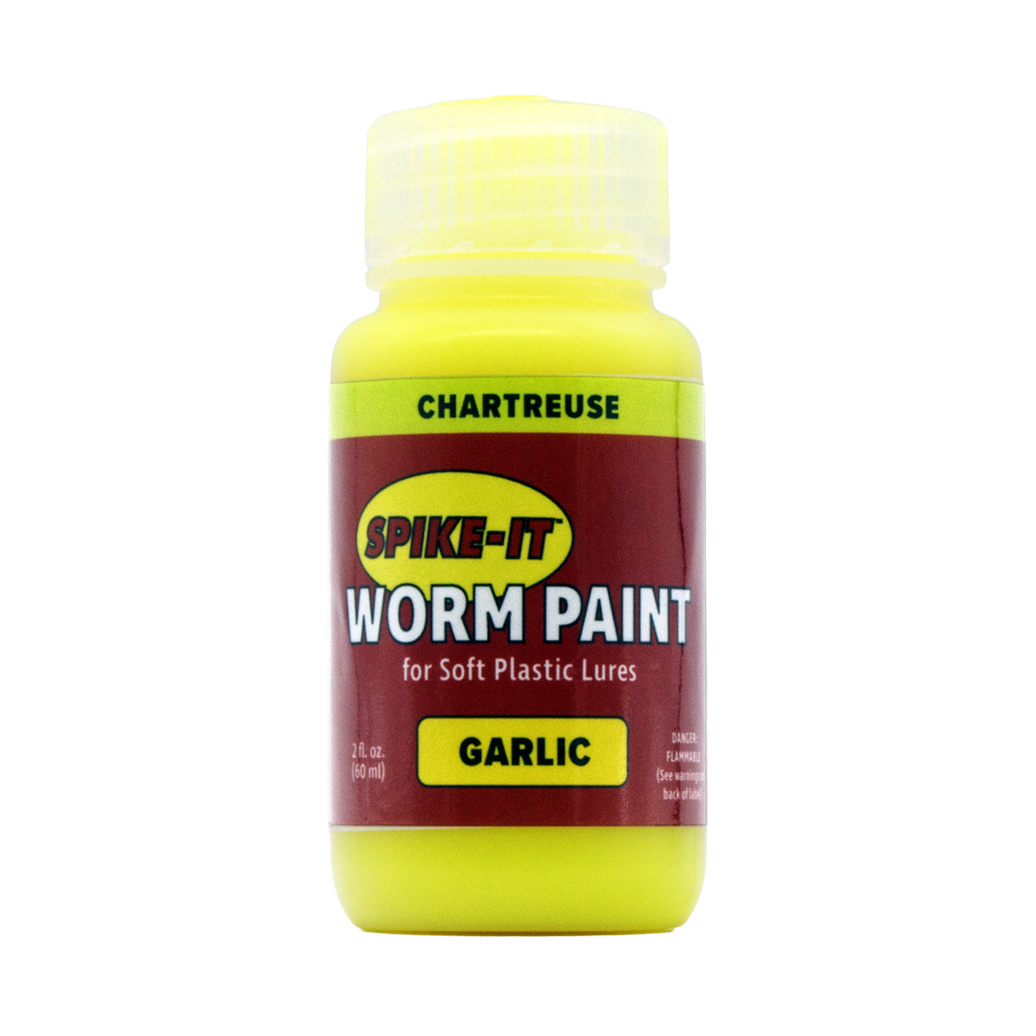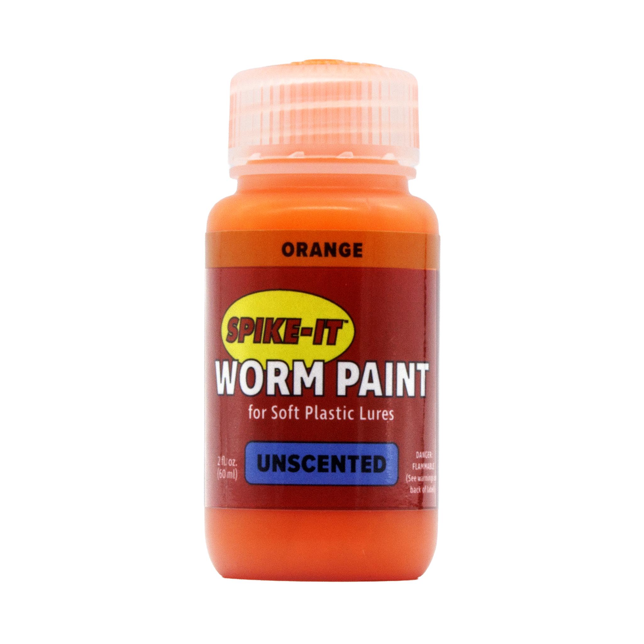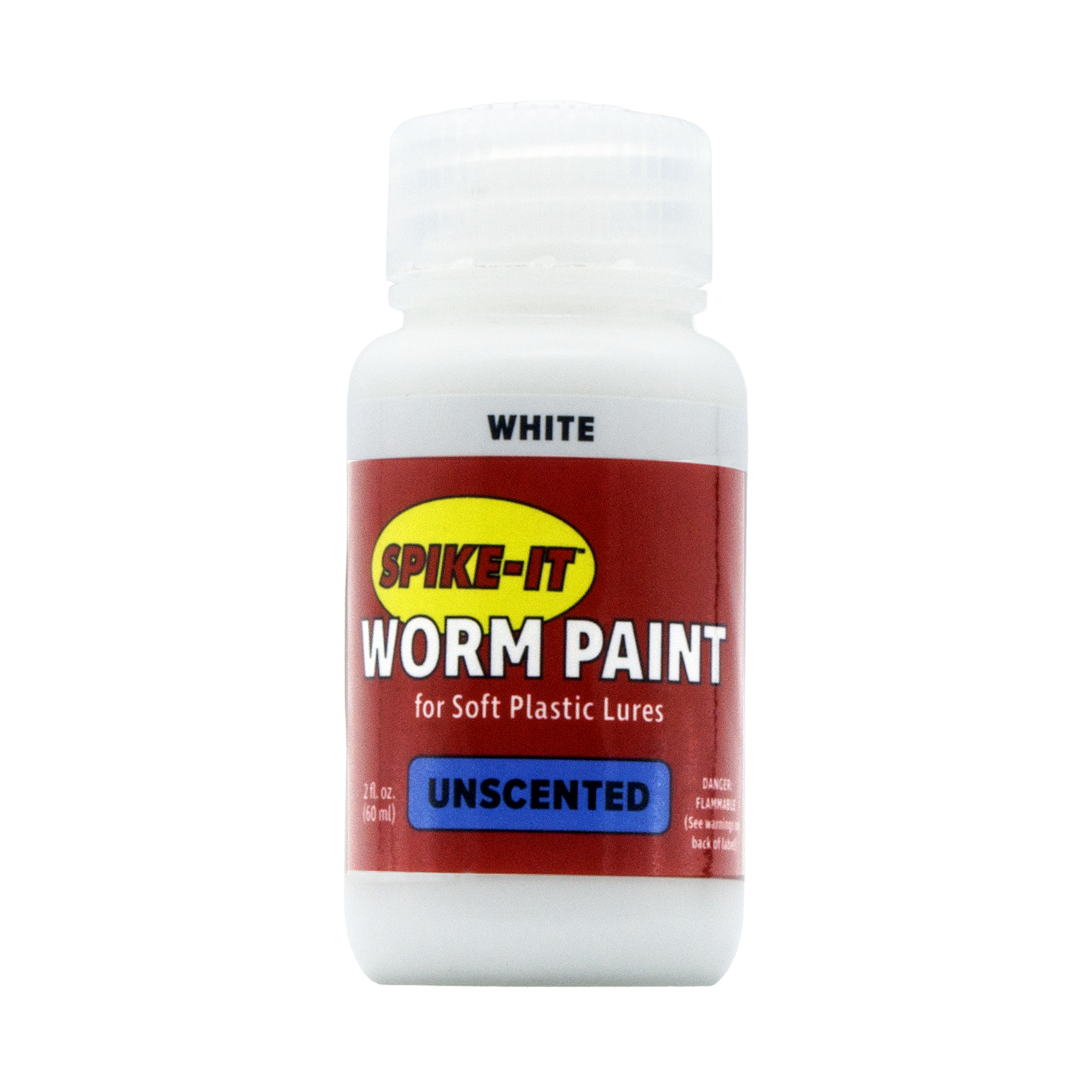 Worm Paint is similar in concept and as our Dip-N-Glo™ but in paint form. Worm Paint is a soft plastic paint that is more opaque, more permanent, and non-bleeding than dye but just as flexible. To achieve maximum color on dark lures, dip first in white to act as a basecoat before dipping in color.