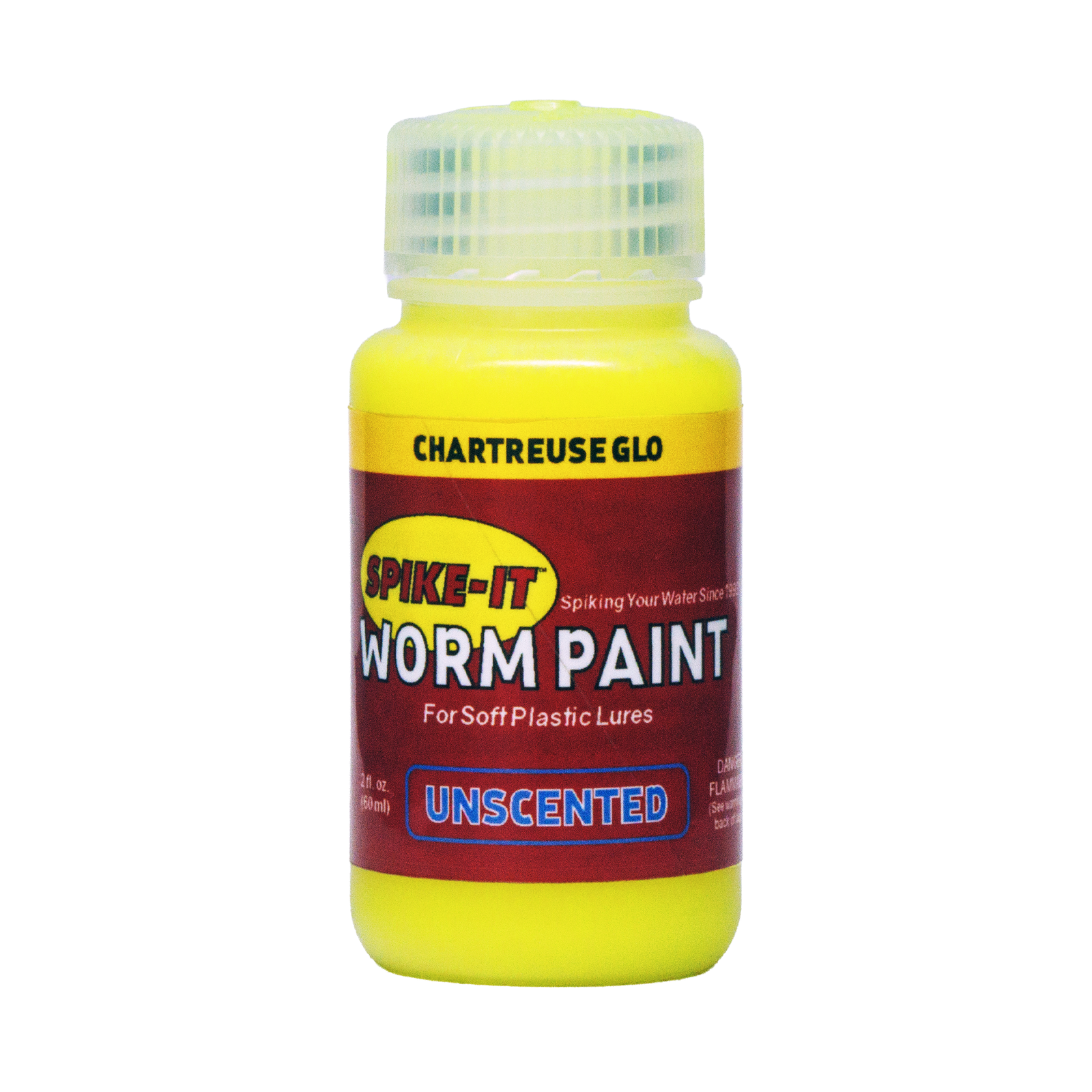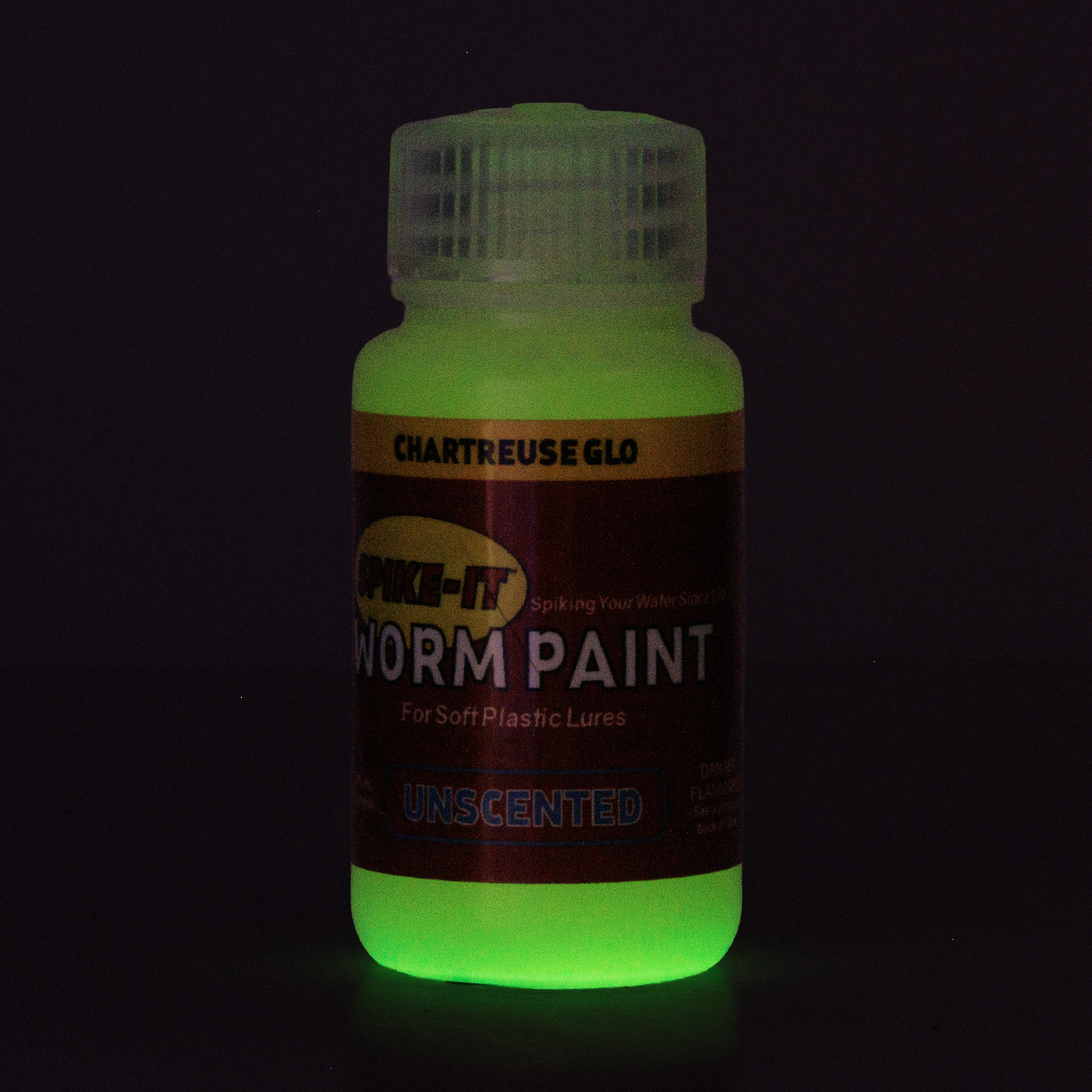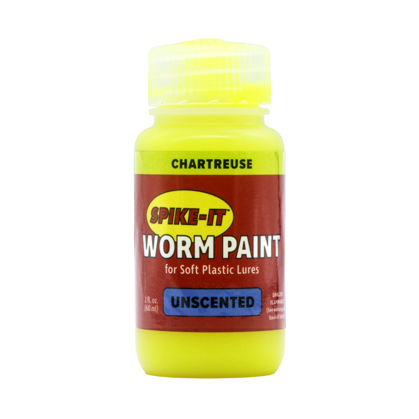 Worm Paint is similar in concept and as our Dip-N-Glo™ but in paint form. Worm Paint is a soft plastic paint that is more opaque, more permanent, and non-bleeding than dye but just as flexible. To achieve maximum color on dark lures, dip first in white to act as a basecoat before dipping in color.