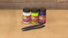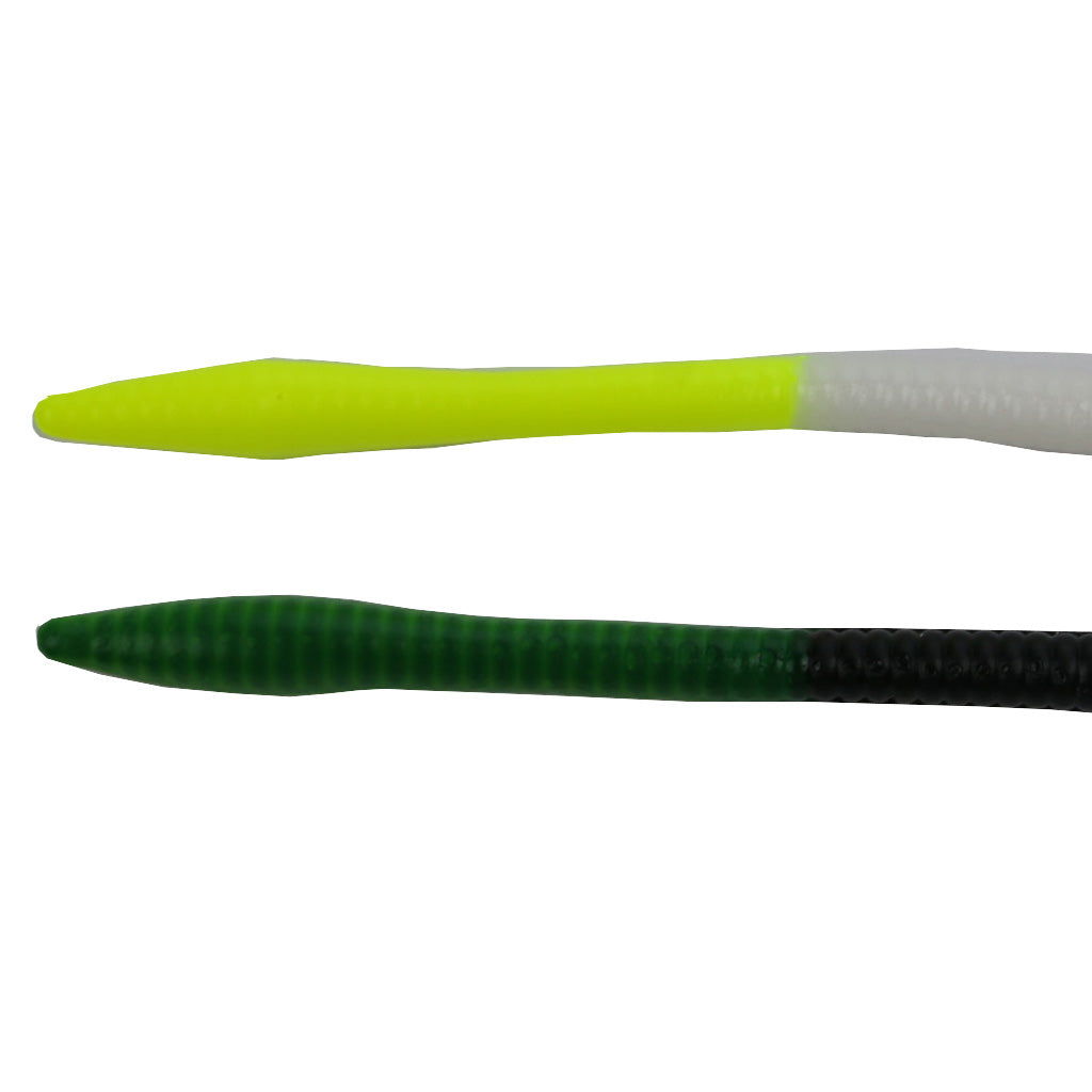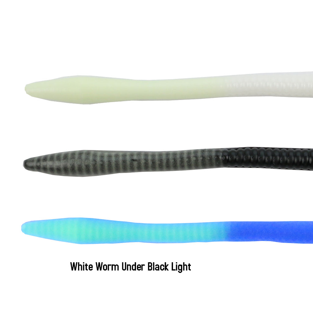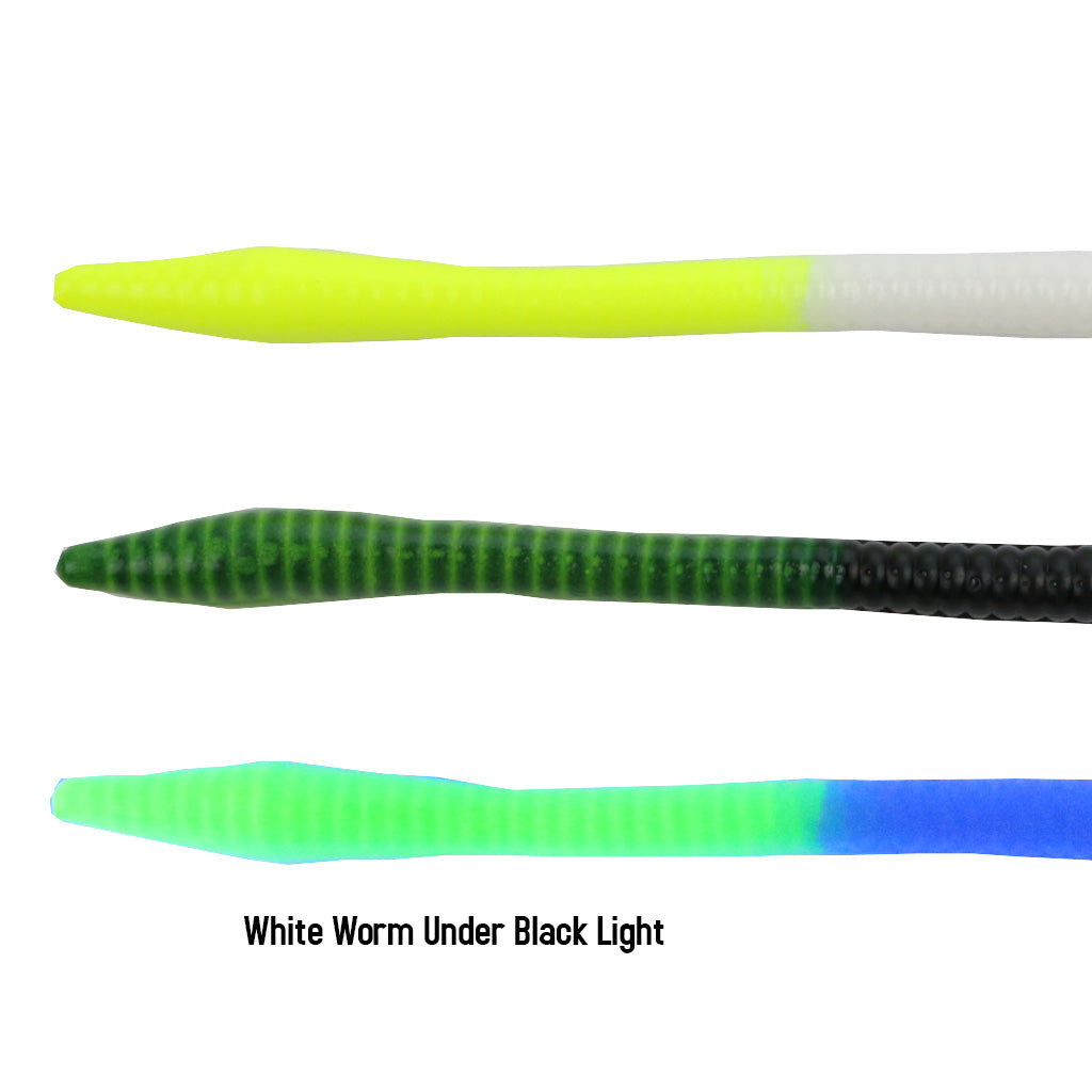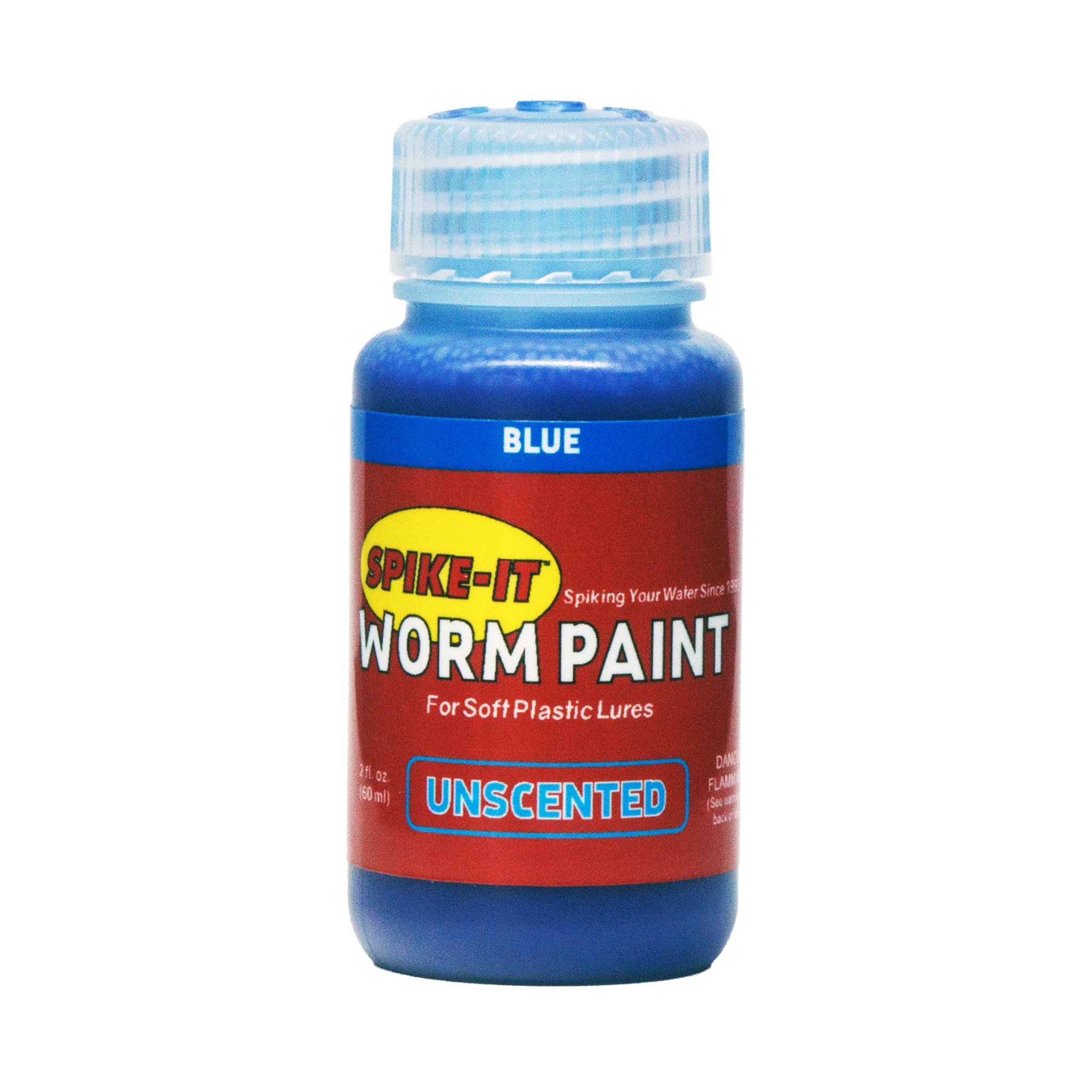 Worm Paint is similar in concept and as our Dip-N-Glo™ but in paint form. Worm Paint is a soft plastic paint that is more opaque, more permanent, and non-bleeding than dye but just as flexible. To achieve maximum color on dark lures, dip first in white to act as a basecoat before dipping in color.